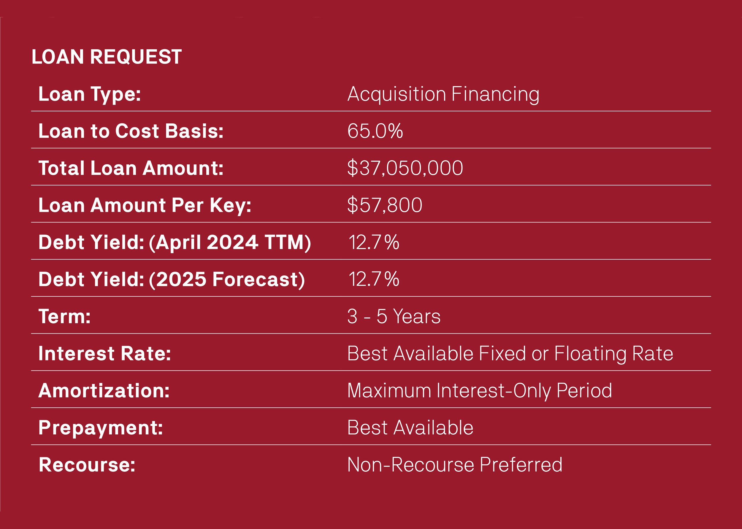 As of April 2025, the Hotel is generating $4,712,867 in T-12 NOI, equating to a 12.7% debt yield on requested loan proceeds at 65% LTC.
